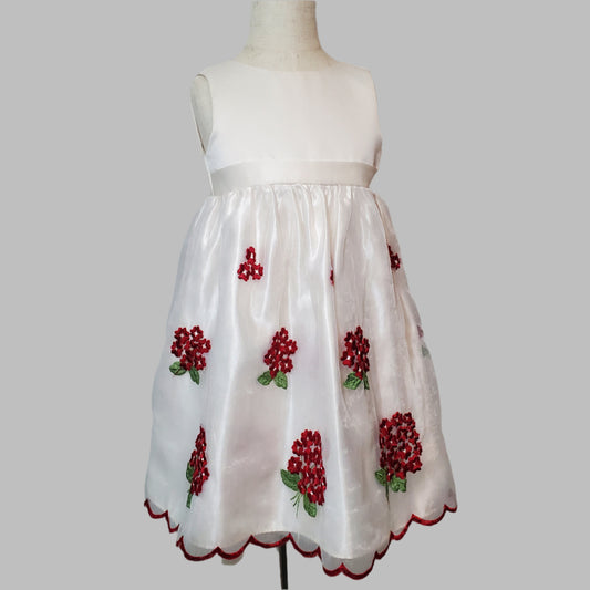 Toddler Girl Red Flower on White Dress With Matching Cardigan