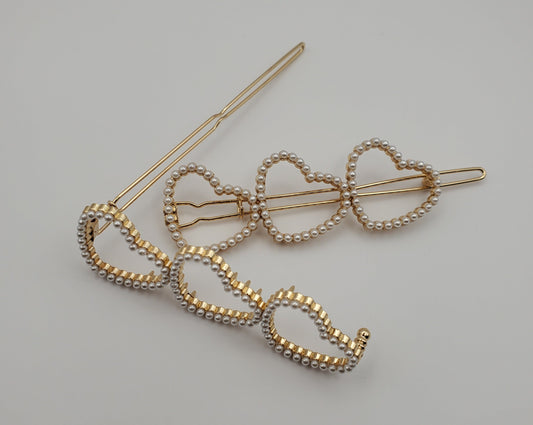 Heart Shaped Rhinestones Hair Barrettes Set of 2