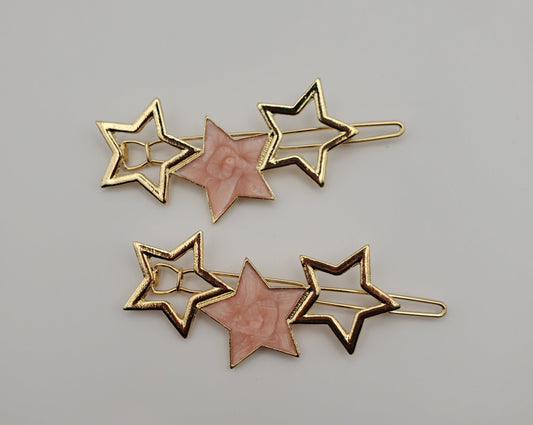 Star Shape Light Pink Sequins Rhinestones Hair Barrettes Set of 2
