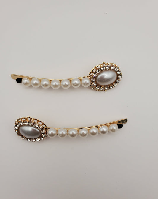 Pearl Round Circle Sequins Rhinestones Hair Pin Set of 2